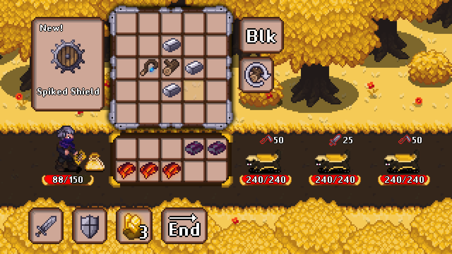 Gameplay combines the enemy telegraphing and attack/defend balance of Slay the Spire with the crafting system of Minecraft to create a fresh new spin on the turn-based RPG formula. Battles require thought and adaptation, with exciting, combat-altering bosses that test the limits of your crafting knowledge and mastery of the vast arsenal of weapons, shields and resources.